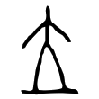 ,由大和一構形。大,像人正面張開雙臂跨立之形,獨體象形;一,是用來像地的,沒獨立的形、音、義,只是一個不成文的實象而已。當大置於一上,正可表示站立的意思。金文二例,無疑都承於甲文之形。戰國文字第三例,用兩條橫畫來像地,不影響其音、義。篆文