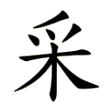 承於篆文之形,顯而易見。以上諸形,都由爪、木二字構成,又和爪、木二字沒聲音關係,所以在六書中屬於異文會意。采和釆(音ㄅㄧㄢˋ biàn)形體很相近,為免混淆,就在采旁增手為形,而采轉為聲符,兼表其義。在六書中屬於形聲兼會意。