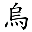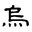 此字金文像鳥抬起頭叫的樣子,表示烏鴉喜歡啼叫的特徵;另有一個形體沒有畫出眼睛。篆文像沒有畫出眼睛的烏鴉,因為烏鴉全身黑色的羽毛,所以看不出眼睛的位置。隸書、楷書都從篆文來,將烏鴉的足及尾變成四點。在六書中屬於象形。
