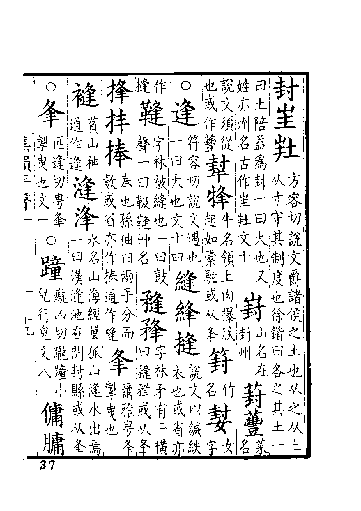 方容切説文爵諸侯之土也從之從土從寸守其制度也徐鍇曰各之其土一曰土陪益為封一曰大也又姓亦州名古作㞷𡊽文十