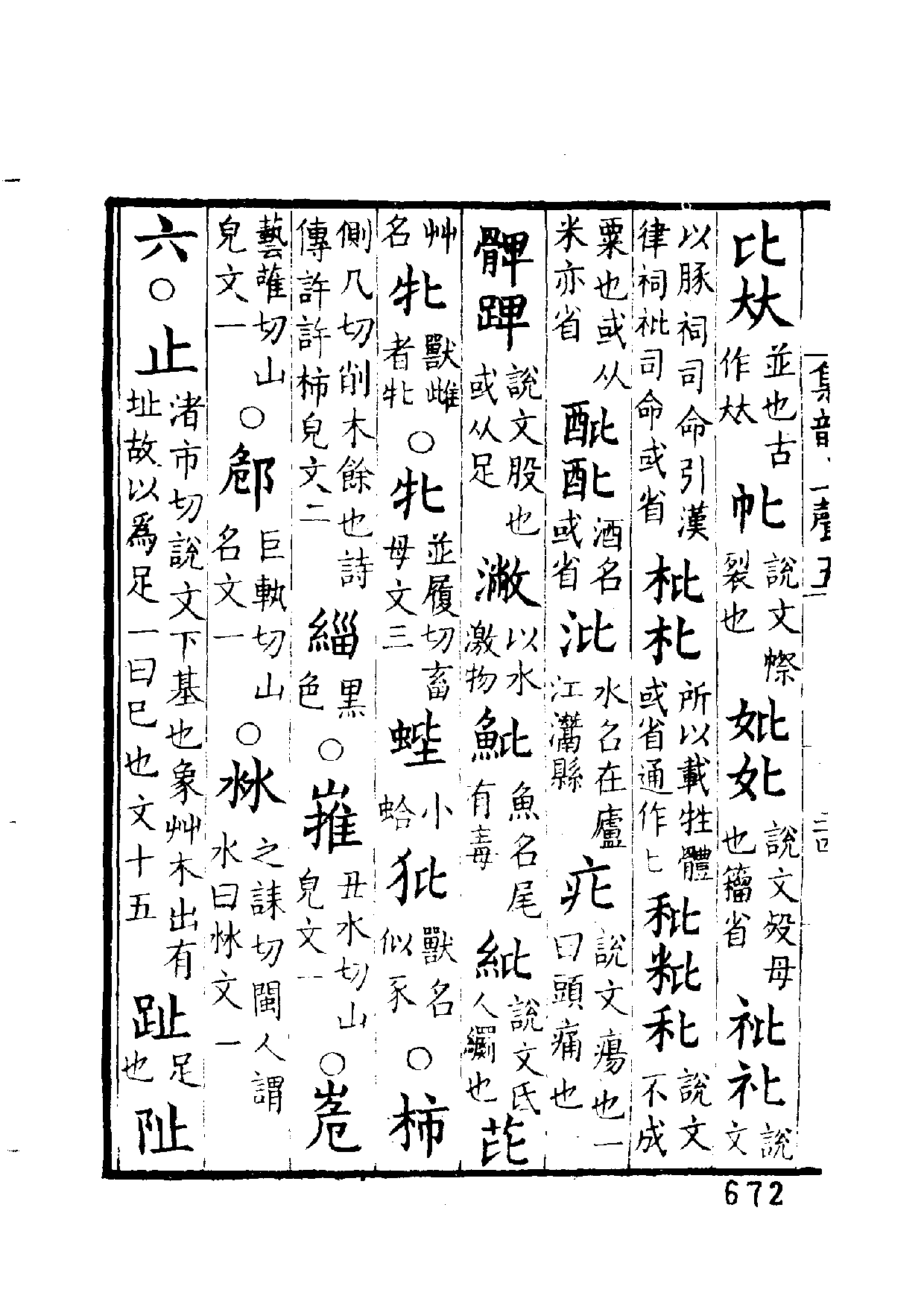 渚市切説文下基也象艸木出有址故以為足一曰已也文十五