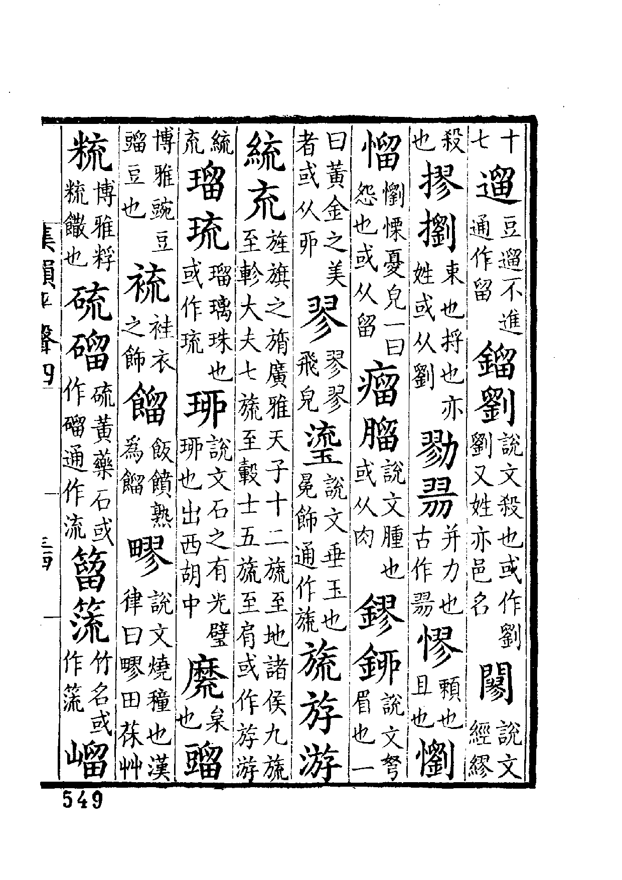 旌旗之旓廣雅天子十二旒至地諸侯九旒至軫大夫七旒至轂士五旒至肩或作斿游𦀠㐬