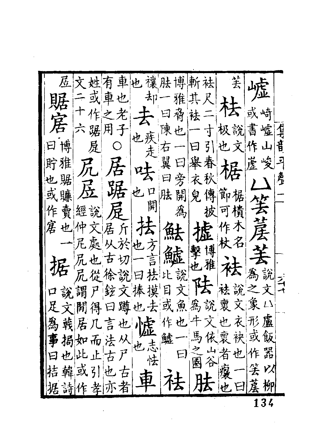 斤於切説文蹲也從屍古者居從古徐鉉曰言法古也亦姓或作踞𧿃文二十六