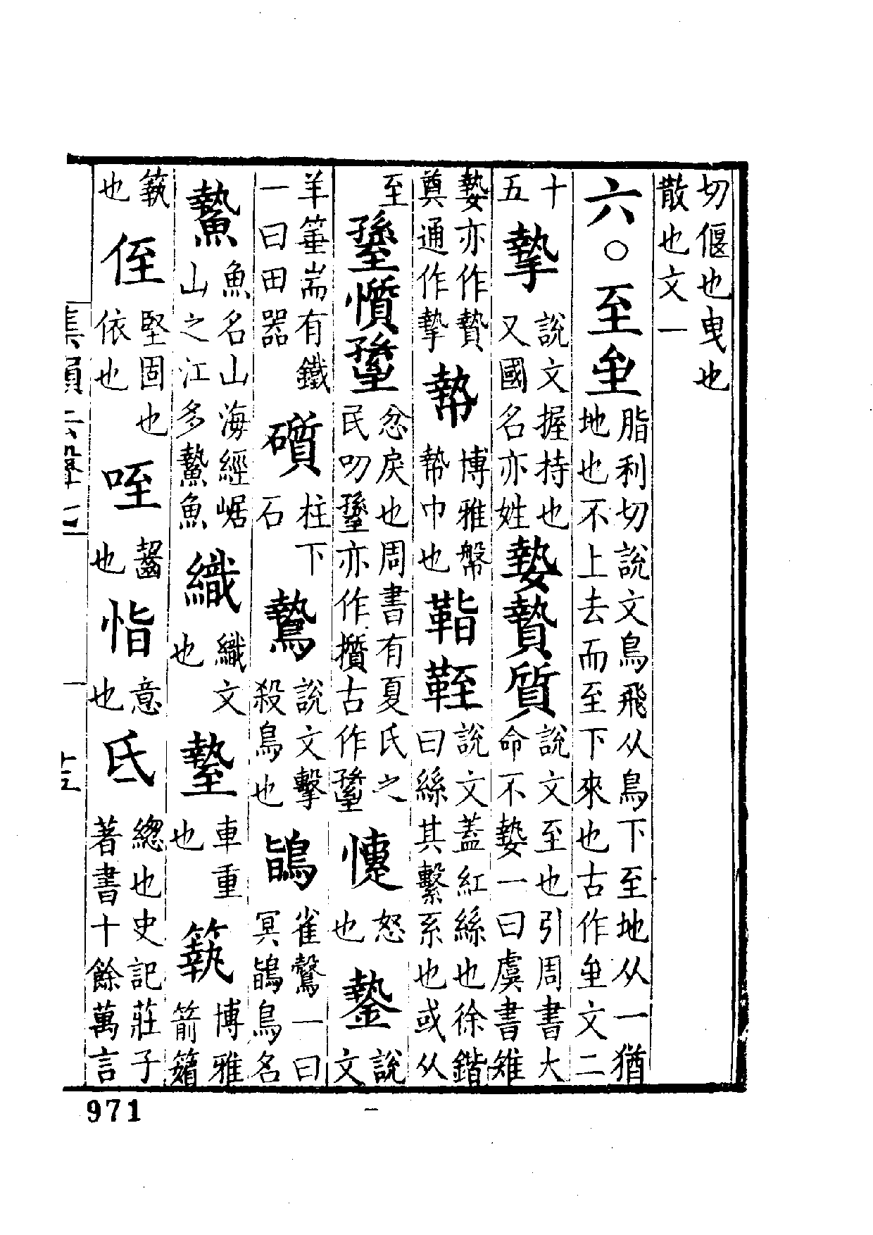 脂利切説文鳥飛从鳥下至地从一猶地也不上去而至下來也古作𡉸文二十五