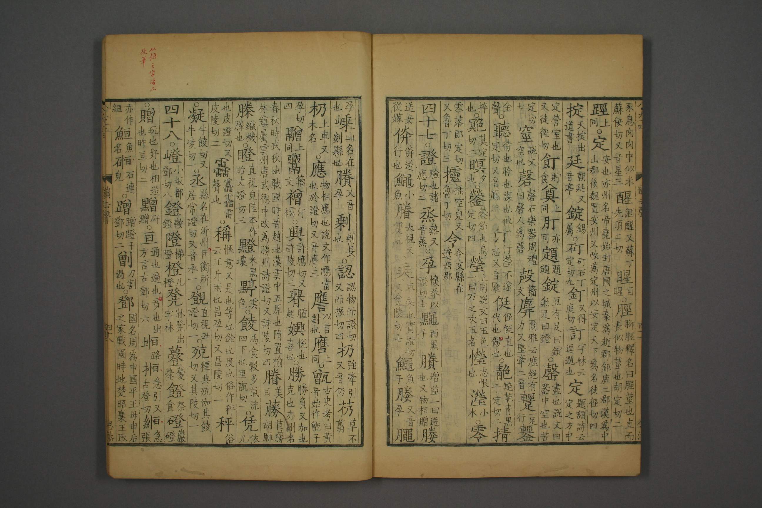 高本汉:tʰieŋ/李荣:tʰeŋ/潘悟云:tʰeŋ/蒲立本:tʰɛjŋ/邵荣芬:tʰɛŋ/王力:tʰieŋ/郑张尚芳:tʰeŋ/有女罗马字:thenq/古韵罗马字字:thengh/推导现代汉语:ting4